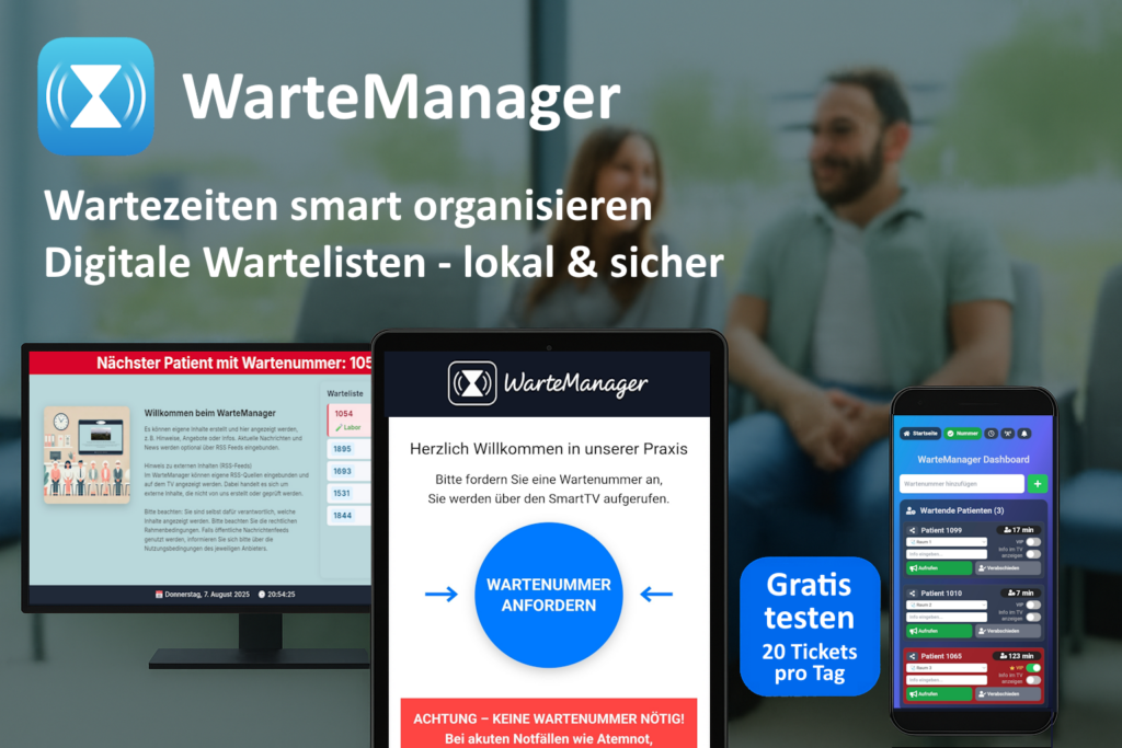 Im medizinischen Umfeld kann der WarteManager per GDT-Import direkt mit Praxissoftware zusammenarbeiten. Außerdem stellt der WarteManager eine offene API bereit.